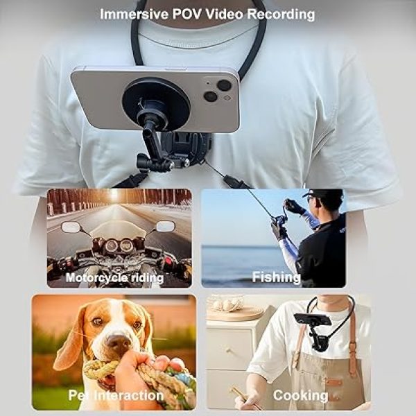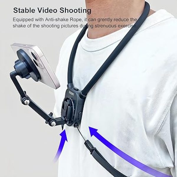 • 【 Strong Magnetic Design】 The phone neck bracket adopts a magnetic quick disassembly design, with 16 strong aluminum magnets and ultra strong magnetic design, so there is no need to worry about falling during shooting. The integrated zinc alloy rod lifting structure allows for quick and convenient installation, achieving first angle shooting and bidding farewell to the tedious disassembly process of mobile phone holders.
